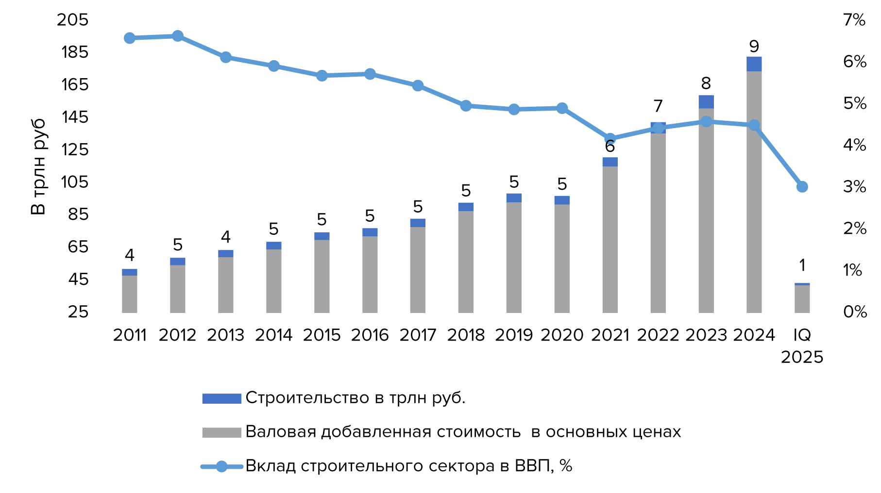 Строительная отрасль в сравнении с валовым внутренним продуктом (ВВП)