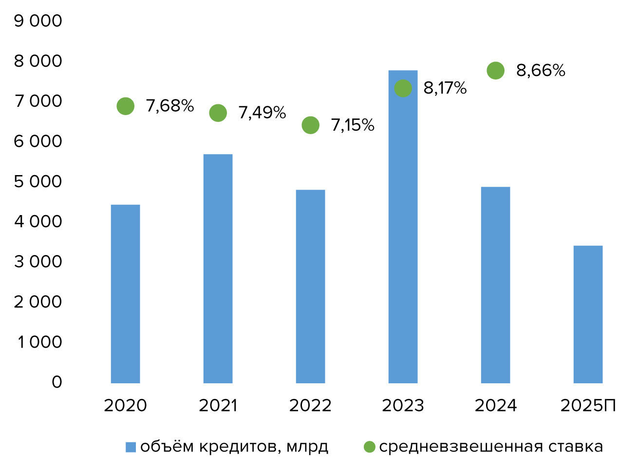 После рекордных цифр 2023-го (2 млн кредитов на общую сумму 7,8 трлн руб.), в 2024-м объемы выдачи резко сократились (1,3 млн займов на 4,9 трлн руб.).