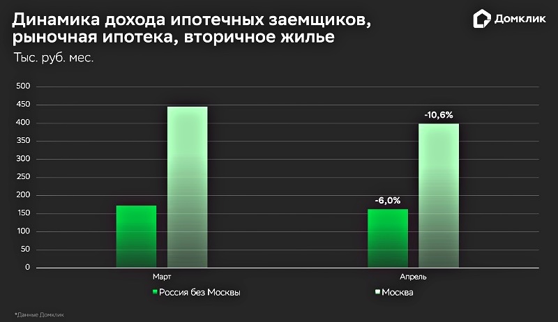 То есть в апреле на рынке жилья появились менее обеспеченные и менее притязательные покупатели, готовые выбрать квартиру худшего качества и в более старых домах.