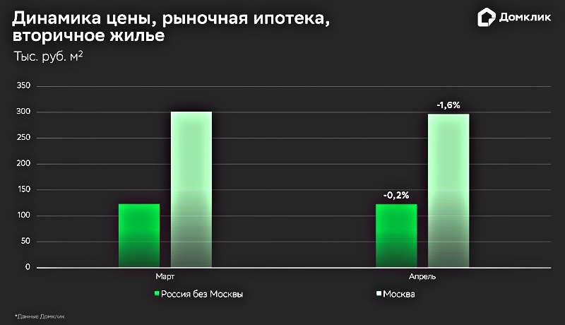 Похожая картина в апреле наблюдалась и с ценами на вторичное жилье вне рамок данной программы.