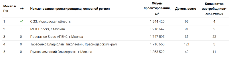 Опубликован рейтинг проектировщиков с изменениями на январь