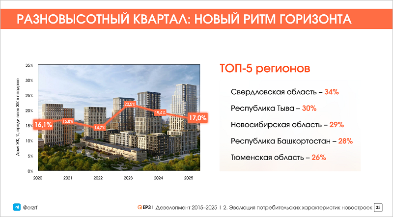 Как трансформировался рынок многоквартирного строительства за 10 лет? Где появились новые центры роста, как менялись цены и потребительские характеристики жилья? ЕРЗ.РФ подвел итоги десятилетия в исследовании «Девелопмент 2015—2025. Путь трансформации: от квадратных метров к качеству жизни».