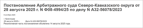 Арбитражный суд Северо-Кавказского округа (г. Краснодар) постановлением №Ф08-4994/25 от 28.08.2025 по делу №А32-56078/2023 оставил в силе решения нижестоящих инстанций, отказав девелоперу в перерасчете земельного налога без применения повышающего коэффициента.