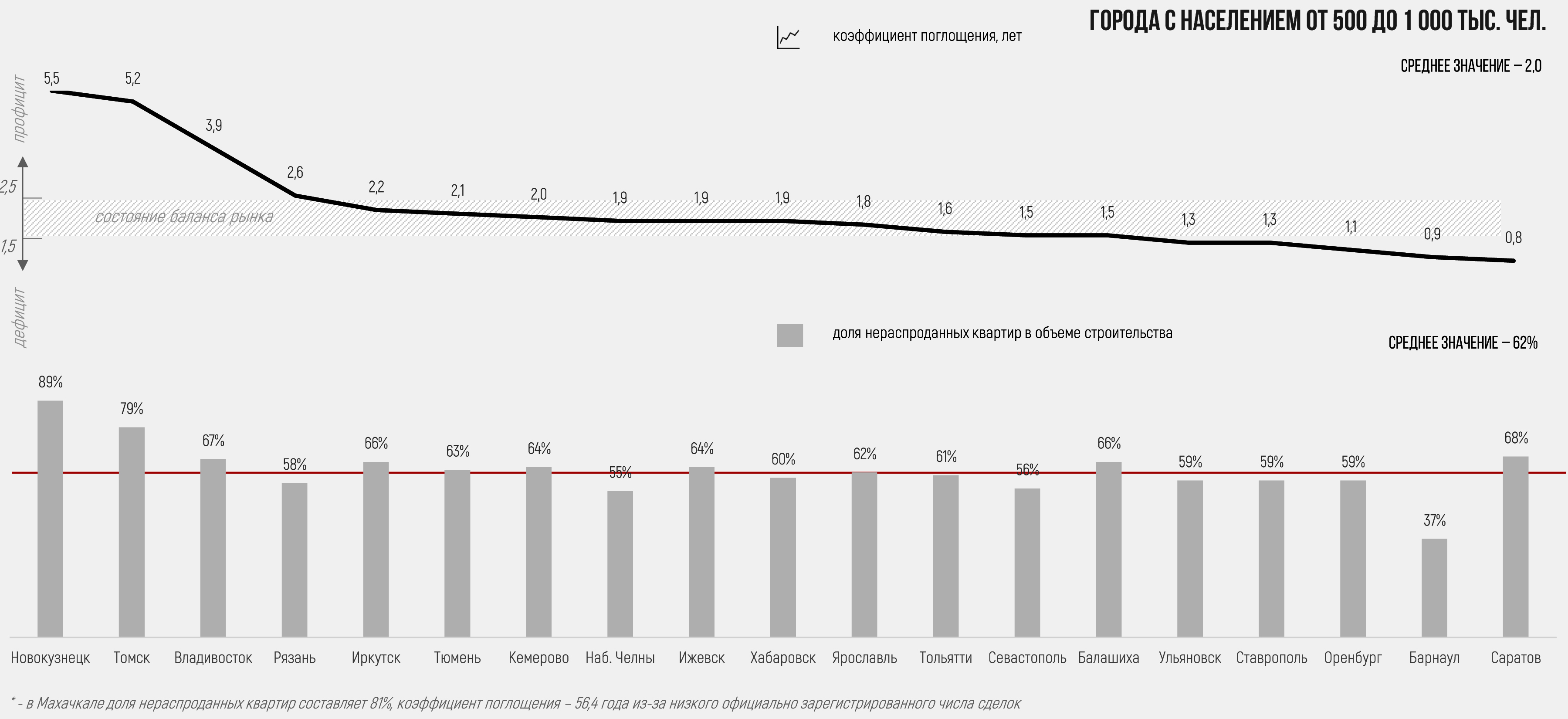 Существенный профицит (более пяти лет) наблюдался только в Томске и Новокузнецке.