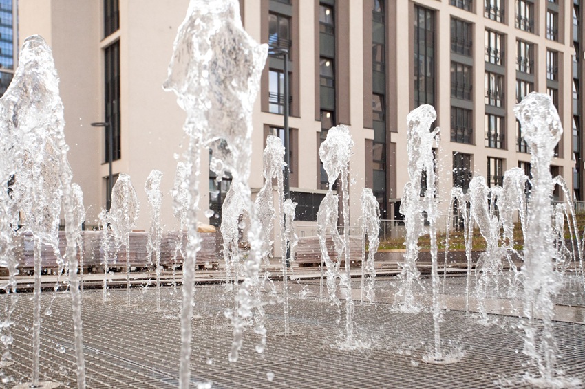 Сезон фонтанов в ЖК «Дефанс», как и по всей Северной столице, продлится до конца сентября. В этом году планируется запуск еще одного, пятого элемента комплекса – пристенного фонтана «Водопад».