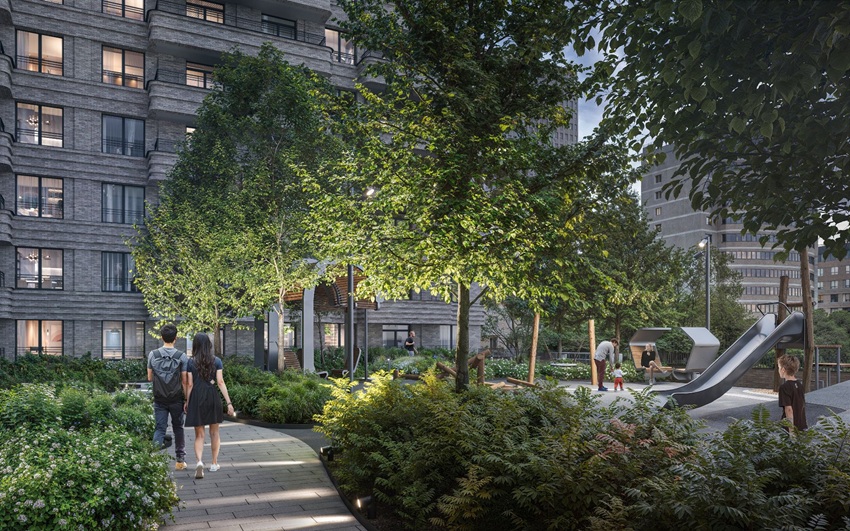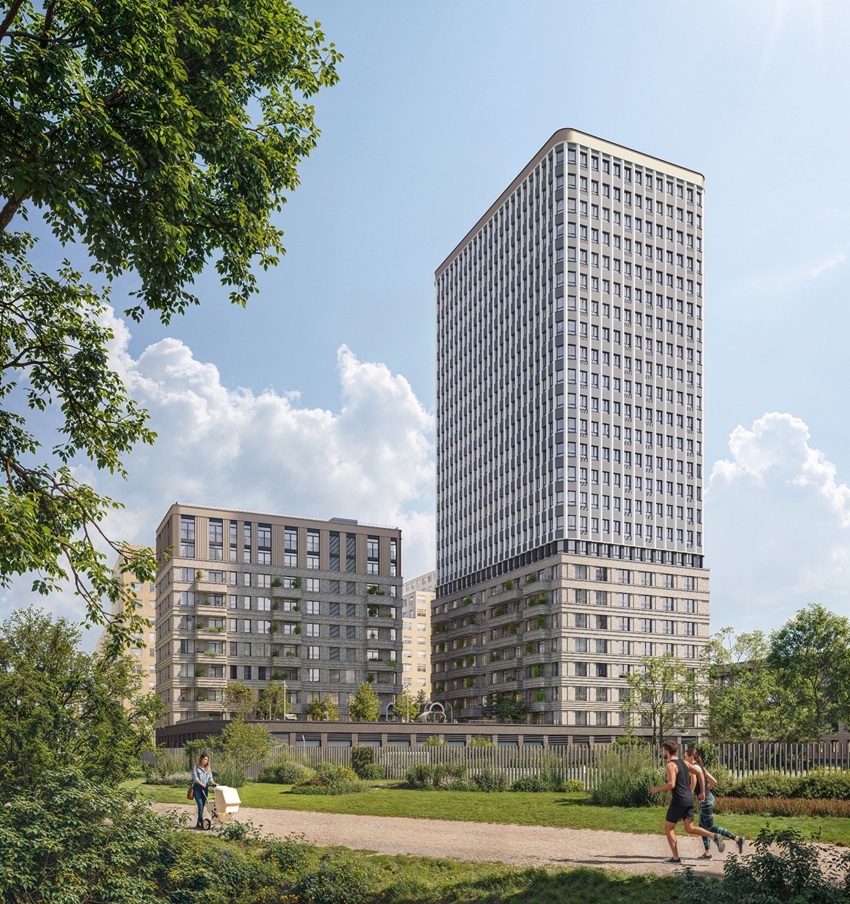 Вторая очередь, как и первая, решена по подобию урбан-блока. Такую актуальную структуру, позволяющую создавать тихие дворы и разнообразные общественные пространства, предложило в концепции ДКЖ международное бюро «МЛА+».