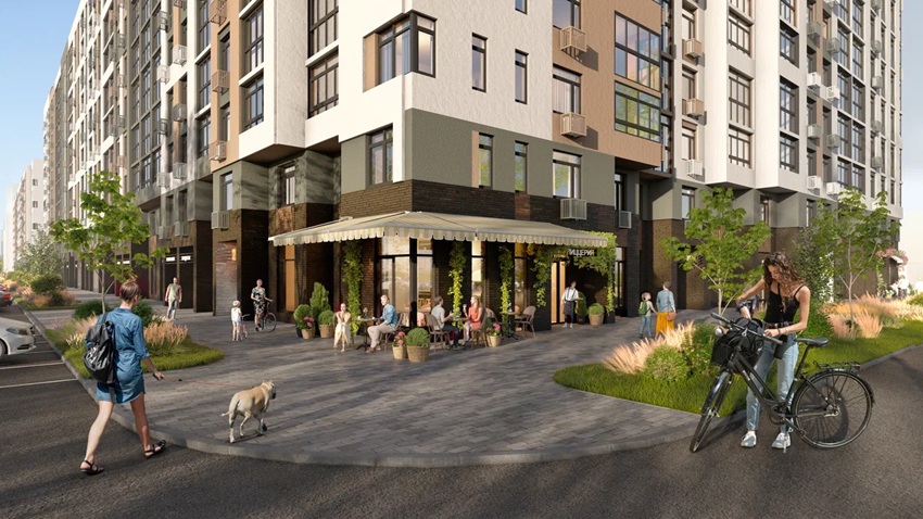 В проекте предусмотрены безбарьерные входные группы с доступом как с улицы, так и со стороны двора, навигация в местах общего пользования, санитарные комнаты и колясочные. В одном из корпусов запланировано гранд-лобби с пространством для встреч и мероприятий, а также зоной коворкинга для жителей комплекса.