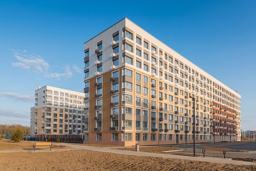 Фасады домов выполнены в современном стиле с использованием качественных долговечных материалов, формирующих выразительный и гармоничный облик. Увеличенные оконные проемы обеспечивают высокий уровень естественного освещения в квартирах, создавая ощущение простора и уюта.