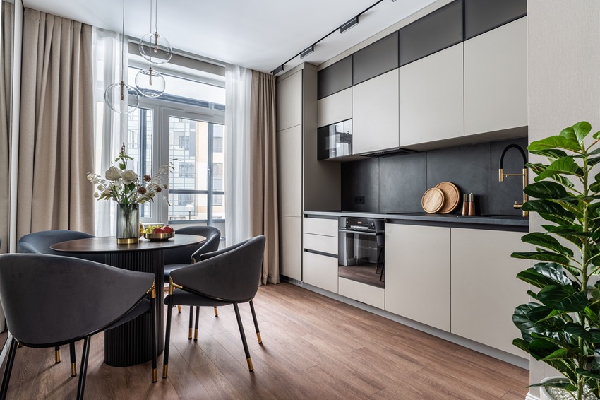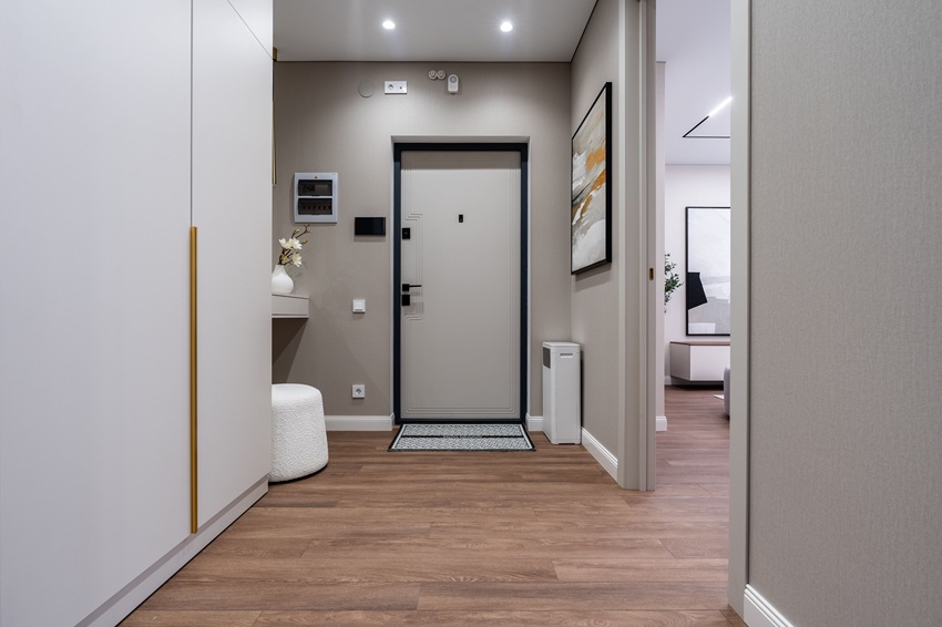 Главная идея стандарта — сочетание качества, практичности и спокойной эстетики. В отделке используются материалы российских и европейских производителей, а дизайн выполнен в нейтральной серо-бежевой гамме, которая легко адаптируется под любой стиль декора. Такое решение делает квартиру универсальной, а пространство остается актуальным даже при смене интерьерных предпочтений владельца.