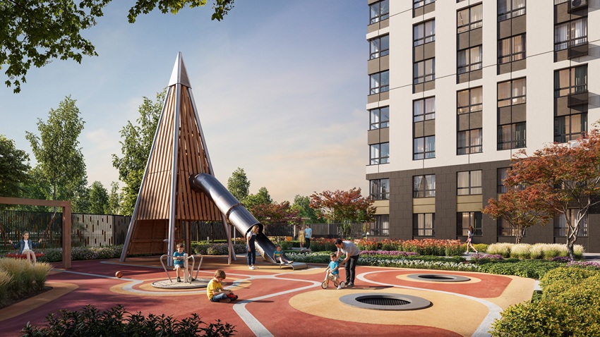 Провести время на свежем воздухе также можно будет во дворе-парке с безопасными и интересными детскими игровыми комплексами из натуральных материалов, спортивными площадками и зонами отдыха. Здесь появится даже место для барбекю. Вообще, вся территория ЖК будет выглядеть как сады непрерывного цветения с продуманным ландшафтным дизайном и растениями, добавляющими краски в любой сезон.