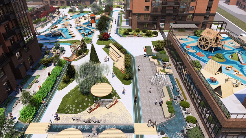 «Речной» расположится всего в 220 метрах от Енисея, а главной доминантой квартала станет искусственная река протяженностью 315 метров, которая будет протекать по территории закрытого двора и станет местом притяжения для всех жителей.