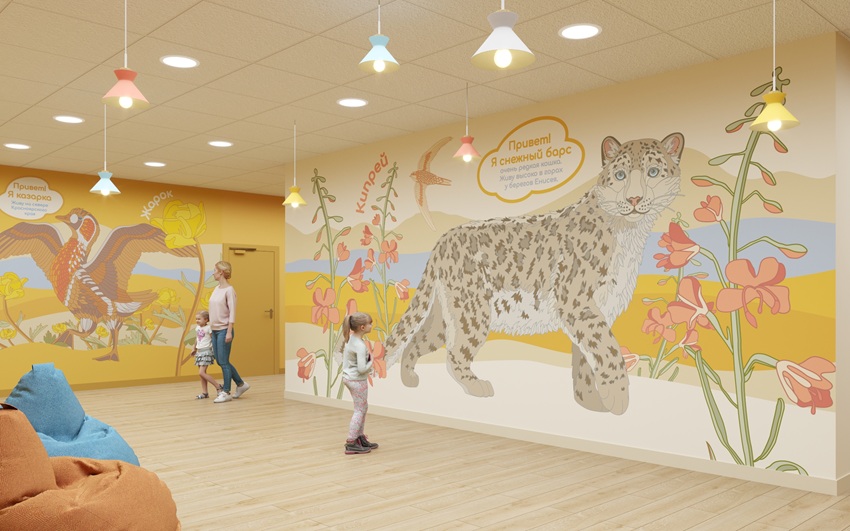 Еще одна особенность проекта — уникальный интерьер, который познакомит детей с природным многообразием Красноярского края, его обитателями и климатическими особенностями.