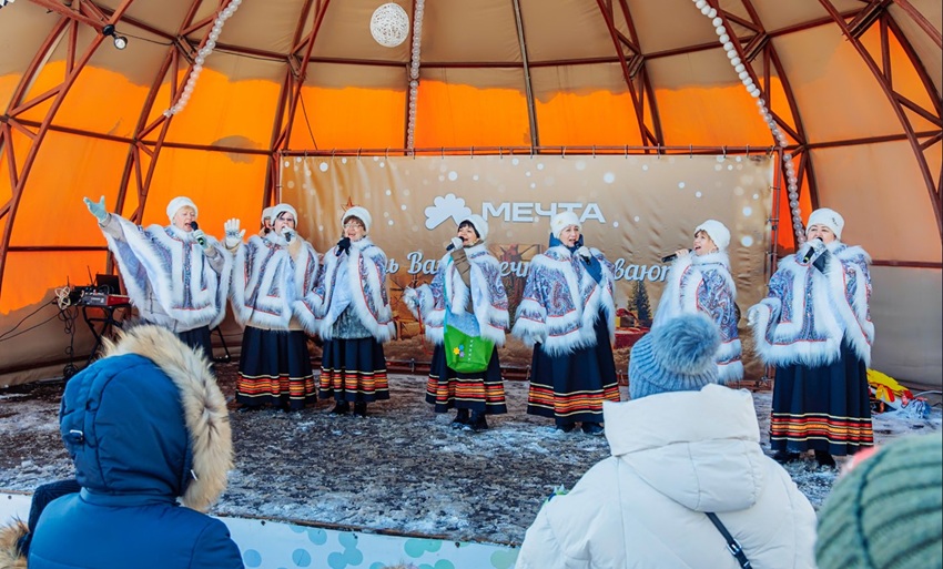 Для самых маленьких жителей «Мечты» организаторы устроили настоящее театрализованное представление. Ряженые скоморохи зазывали прохожих в хороводы, а задорные частушки разогревали публику даже лучше, чем горячий чай.