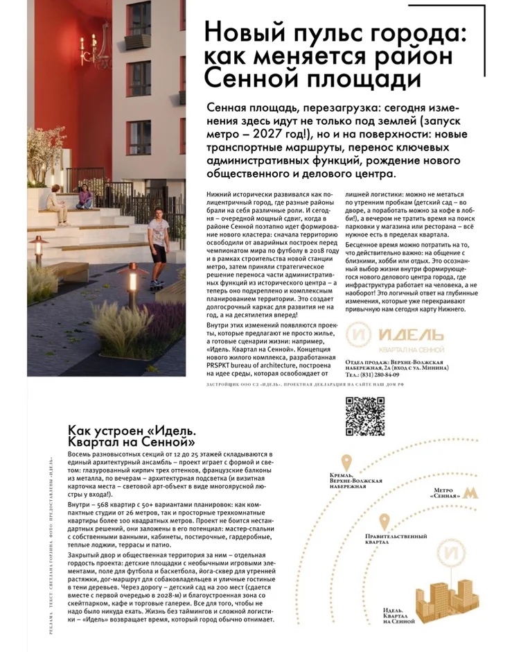 «Готовый сценарий жизни» — формулировка, которая точно отражает философию «Идель. Квартал на Сенной».Среда, где:— не нужно тратить время на лишнюю логистику— всё необходимое находится рядом— а инфраструктура работает на вас Быть частью этих изменений — значит строить не просто дома,а создавать новую среду для жизни.