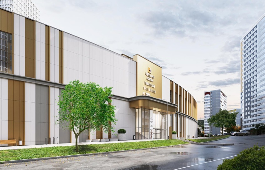 Архитекторы учли форму участка и функциональное назначение объекта, поэтом здание будет иметь форму кольца, повторяющего очертания земельного участка. Также в образе будущего ТЦ можно проследить использование отдельных элементов бионического стиля, для которого характерны пластичность, криволинейность фасадов, наличие обтекаемых поверхностей, отсутствие острых углов. Проектные решения фасадов построены на контрасте цветов и фактур отделочных материалов. Доминирующая бежево-золотистая цветовая гамма соответствуют окружающей застройке. Основной отделочный материал фасада – алюминиевые объемные металлокассеты и ламели на металлокаркасе, в том числе с применением гнутых материалов для создания эффекта «текучести» линий.