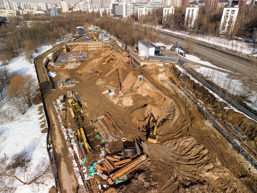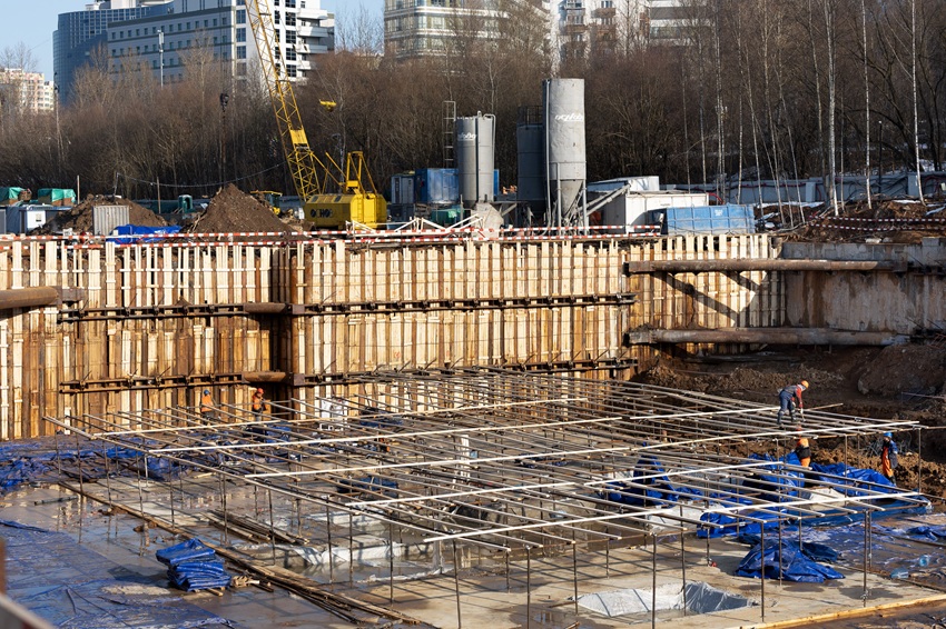 В рамках работ нулевого цикла строители продолжают работы под всеми корпусами жилого комплекса: ведется разработка котлована, выполняется срубка оголовков буронабивных свай, цементация грунтов по технологии JET, устройство грунтовых анкеров и распорной системы котлована, а также устройство шпунтового ограждения и распорной системы лифтовых приямков. Завершены испытания грунтоцементного массива, результаты проведенных испытаний подтверждают его несущую способность согласно расчетам, выполненным в проектной документации.
