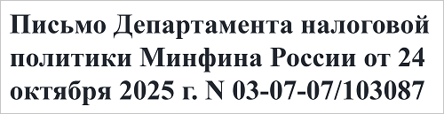 Соответствующие разъяснения содержит письмо Департамента налоговой политики Минфина России №03-07-07/103087 от 24 октября 2025 года.