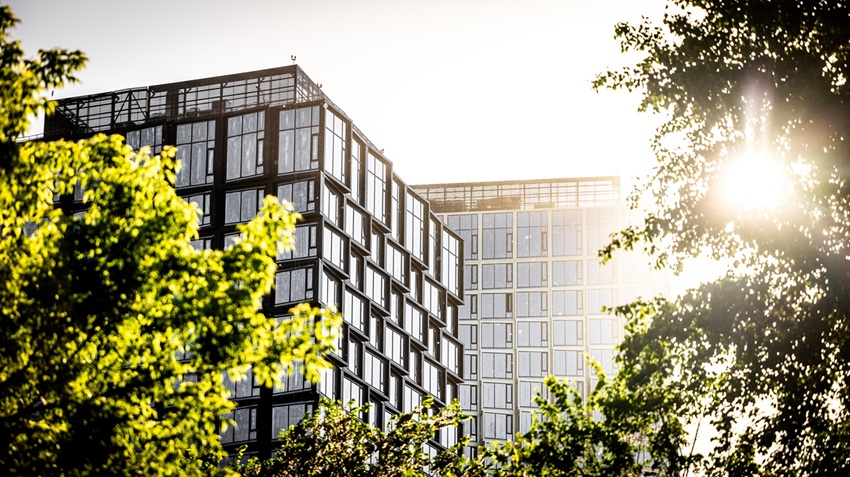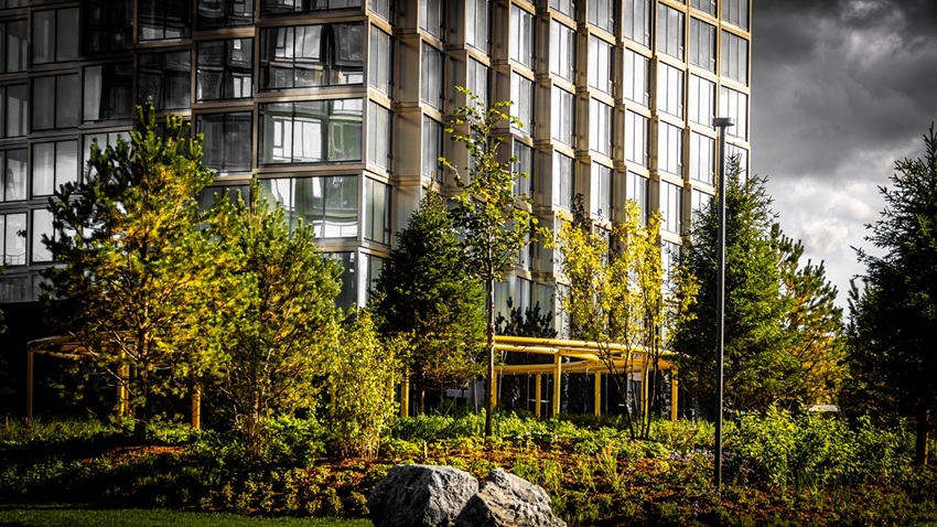 Фасады зданий с архитектурой от бюро ADM выполнены по индивидуальному проекту: в строительстве применены модульные стеклянные конструкции сложной геометрии с пластичными эркерами, которые открывают эффектные виды на центр столицы. Витражное остекление со специальным покрытием обеспечивает высокий уровень солнцезащиты и комфортный микроклимат в квартирах.