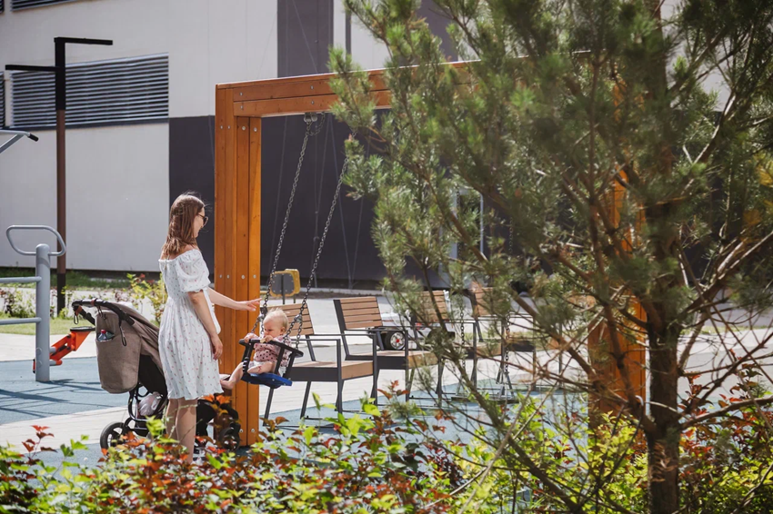 Центр общественной жизни — Площадь событий — превращается в площадку для концертов, ярмарок и праздничных мероприятий. Здесь будет установлена высокая новогодняя ёлка, а качели, удобные лавочки и современное освещение создают атмосферу праздника и уюта круглый год.
