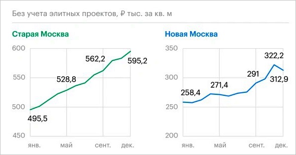 • в Старой Москве — на 20,1%, до 595,2 тыс. руб. за 1 кв. м;