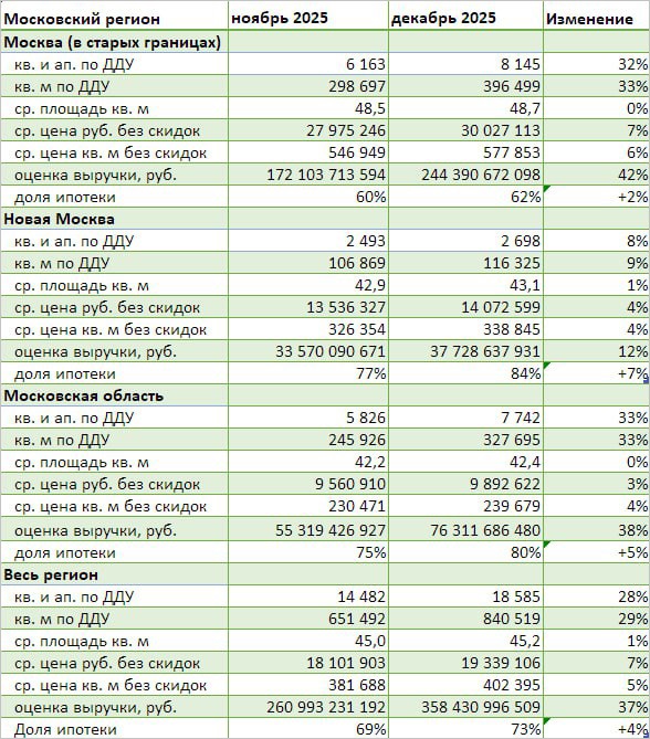 По сравнению с декабрем 2024 года количество сделок в столице увеличилось на 18%, в Подмосковье — более чем в два раза.