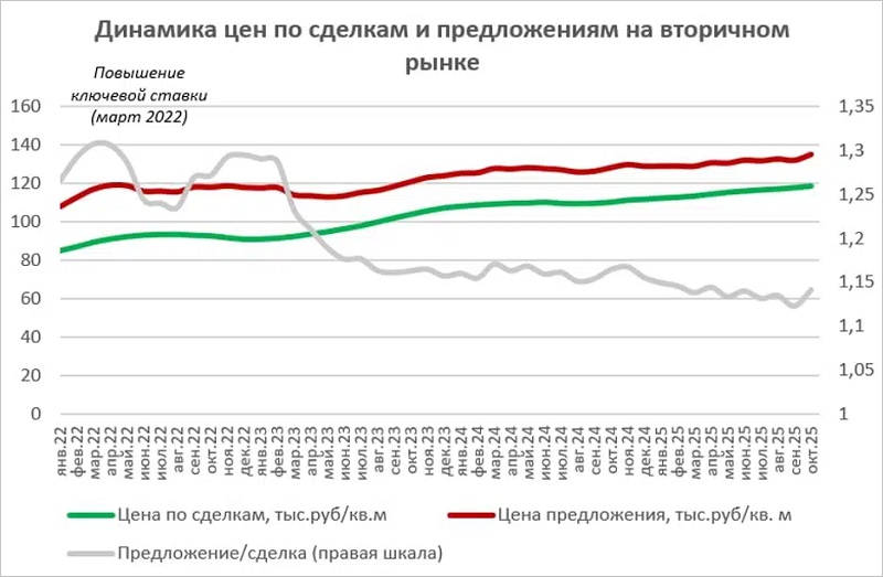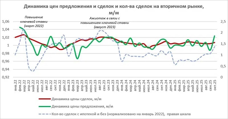 Динамика цен на готовое жилье, октябрь 2025 года