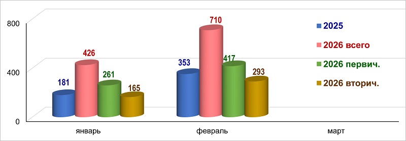 Количество ипотечных жилищных кредитов в 2025 и 2026 годах, тыс. шт. (нарастающим итогом)