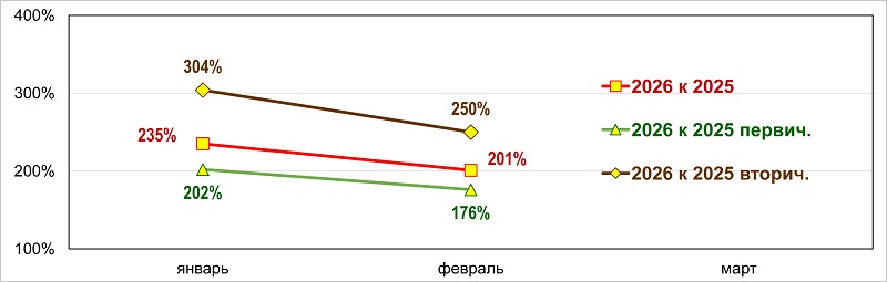 Здесь стоит вспомнить, что весь 2025 год «вторичка» тормозила рынок. Не исключено, что в 2026-м она начнет перетягивать спрос на себя. Некоторые эксперты уже об этом заявляли.