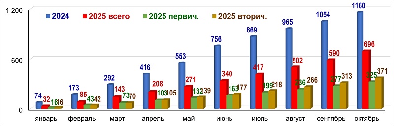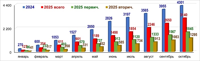 Количество ипотечных жилищных кредитов в 2024 и 2025 годах, тыс. шт. (нарастающим итогом)