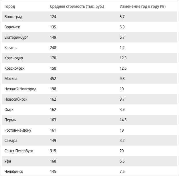 Средняя стоимость 1 кв. м жилья в новостройках в российских мегаполисах