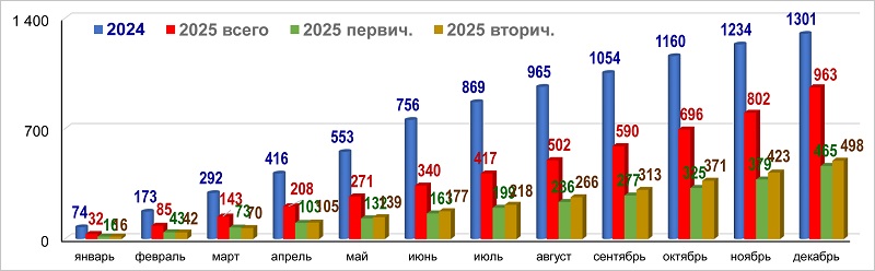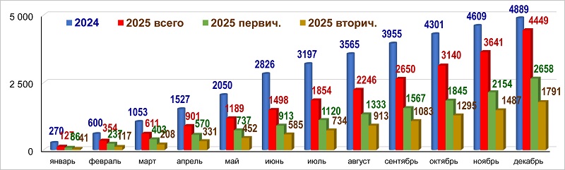 Количество ипотечных жилищных кредитов в 2024 и 2025 годах, тыс. шт. (нарастающим итогом)