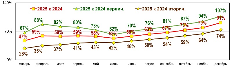 Тем не менее к декабрю первичный рынок фактически догнал по ипотеке 2024 год.