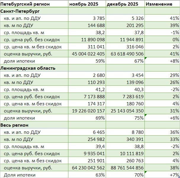 По сравнению с декабрем 2024 года в Петербургском регионе было зарегистрировано на 78% больше сделок: в самом Питере рост составил 60%, в Ленинградской области —117%.