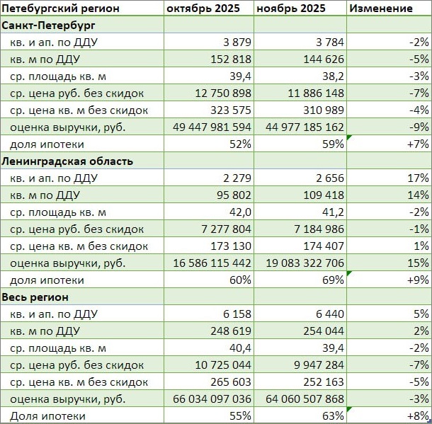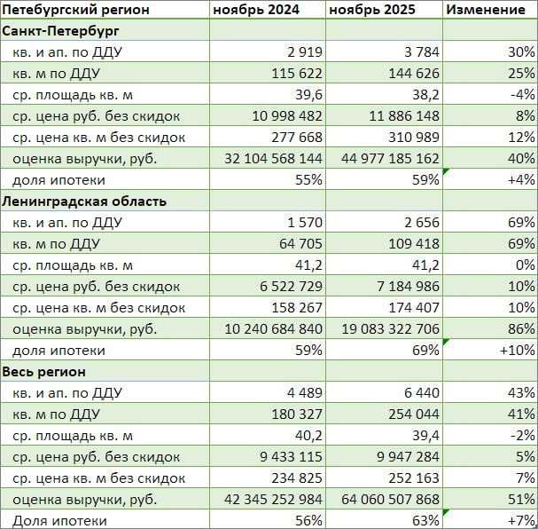 По сравнению с ноябрем 2024 года было зарегистрировано на 43% больше сделок: в городе на Неве — на 21%, в области — на 69%.
