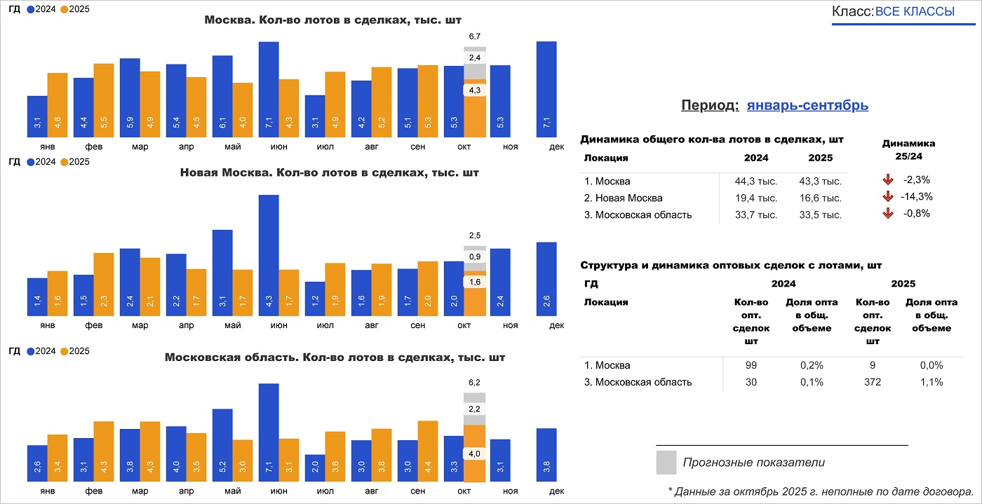 Интернет-сервис bnMAP.pro подготовил развернутый отчет о структуре и динамике спроса на первичное жилье всех классов в Москве и Подмосковье за первые девять месяцев года с прогнозными значениями на октябрь.