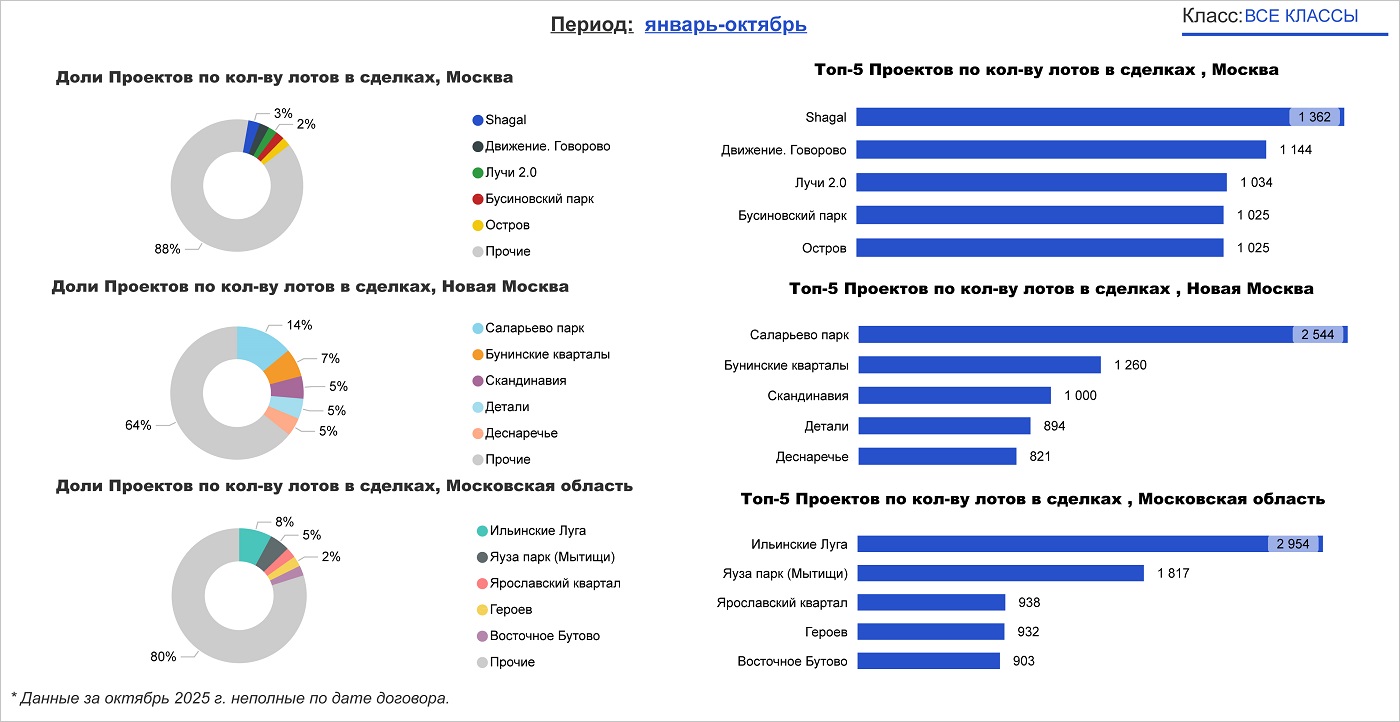 Структура проектов — лидеров по количеству лотов в сделках, 2025 год