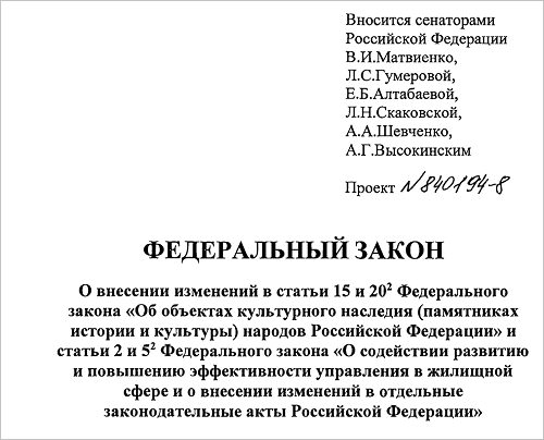 Проект закона №840194-8 одобрен депутатами Госдумы РФ во втором и третьем чтениях и предполагает разработку единого реестра объектов культурного наследия на базе ЕИСЖС.