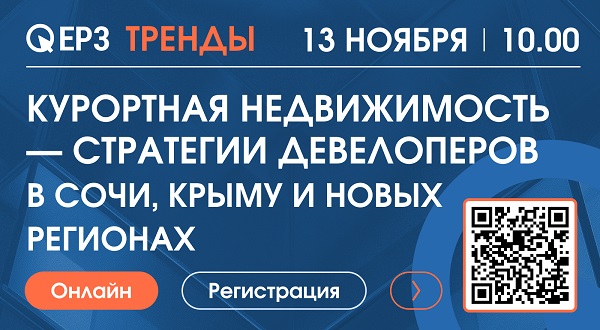 ЕРЗ-тренды 13 ноября в 10.00: «Курортная недвижимость — стратегии девелоперов в Сочи, Крыму и новых регионах»