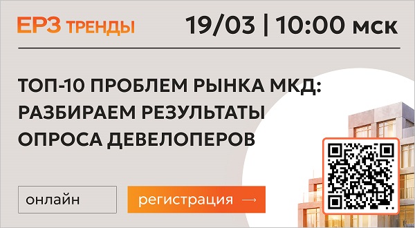ЕРЗ-тренды 19 марта в 10.00 — «ТОП-10 проблем рынка МКД: разбираем результаты опроса девелоперов»