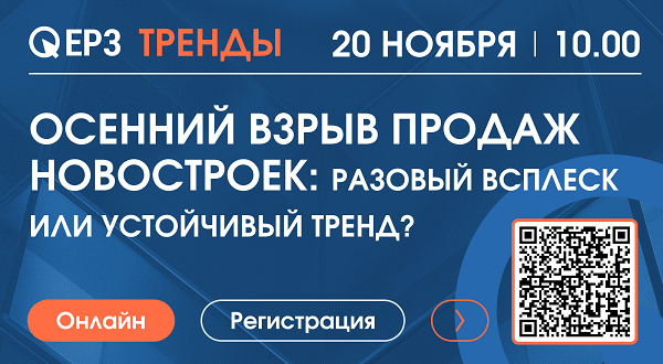 ЕРЗ-тренды 20 ноября в 10.00 — «Осенний взрыв продаж новостроек: разовый всплеск или устойчивый тренд?»