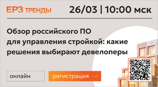 ЕРЗ-тренды 26 марта в 10.00 — «Обзор российского ПО для управления стройкой: какие решения выбирают девелоперы»