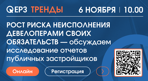 ЕРЗ-тренды 6 ноября в 10.00 — «Рост риска неисполнения девелоперами своих обязательств: обсуждаем исследование отчетов публичных застройщиков»