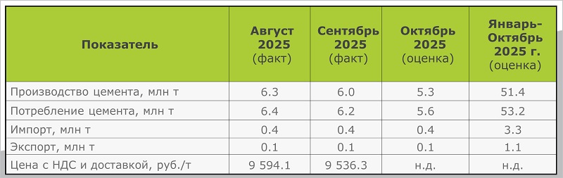 Производство основного строительного материала в сентябре по сравнению с тем же месяцем 2024-го снизилось на 10,5%, до 6,0 млн тонн. Потребление составило 6,2 млн тонн (-10,4%). Об этом говорится в обозрении НО «СОЮЗЦЕМЕНТ», с которым его авторы любезно ознакомили ЕРЗ.РФ.