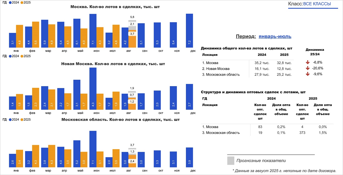 Интернет-сервис bnMAP.pro подготовил развернутый отчет о структуре и динамике спроса на первичное жилье всех классов в Москве и Подмосковье в январе — июле с прогнозными значениями на август.