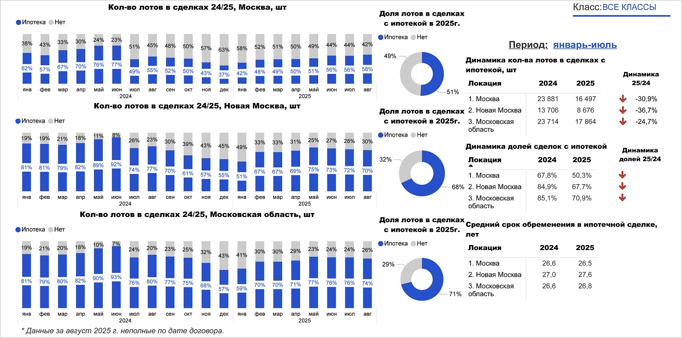 Динамика по количеству лотов в сделках с ипотекой, 2024—2025 годы