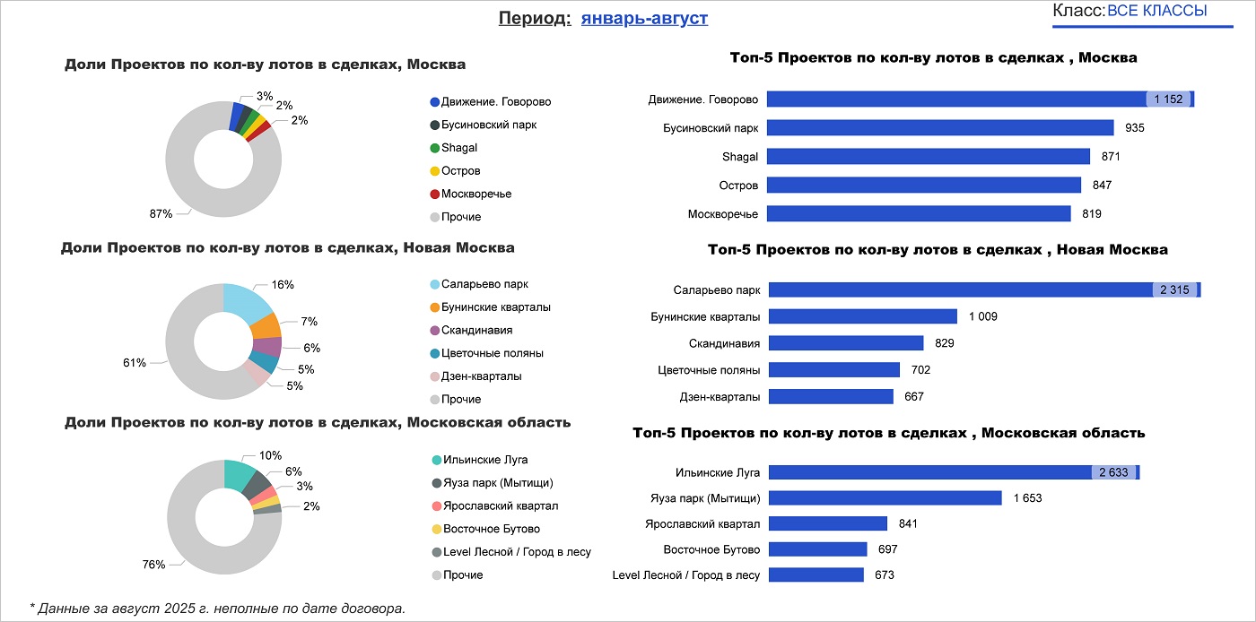 Структура проектов — лидеров по количеству лотов в сделках, 2025 год