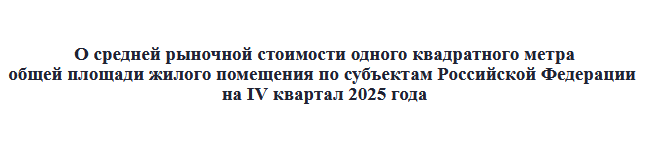 Проект приказа определяет показатели средней рыночной стоимости 1 кв. м общей площади жилого помещения по субъектам РФ на IV квартал 2025 года. Напомним, что аналогичные показатели на III квартал 2025 года были регламентированы приказом Минстроя России №394/пр от 02.07.2025.
