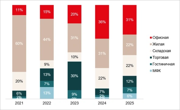 Но если в 2021—2022 годах на их долю приходилось более половины (62% — 52%) объема транзакций, то в 2025-м показатель упал до 30%.