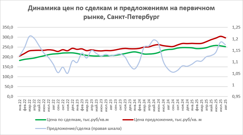 В Северной столице разрыв между ценами предложения и сделки несколько сократился (до 17,5% против 18,6% в июле) при одновременном снижении цен.
