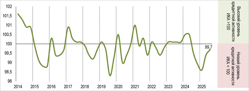 В контексте дискуссий о проблемах строительных организаций с заемным финансированием авторы обзора предлагают обратить внимание на динамику композитного индекса кредитной активности (ИКА).